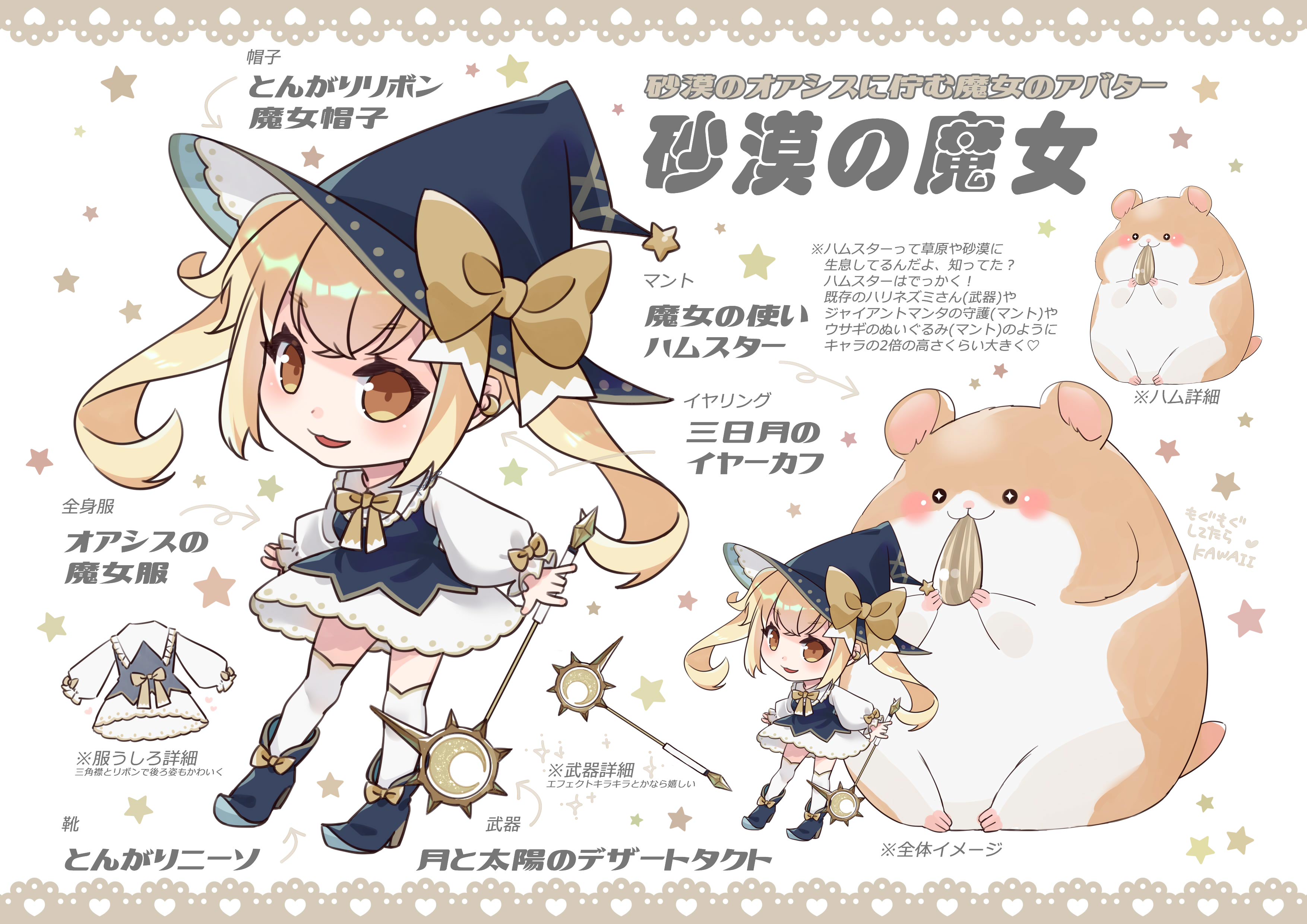 ファンアート ファンアート 新着 ランキング 殿堂入り キャラクター名: ぽすとも ワールド: かえで 冒険手帳を見る 他の作品を見る [アバター]砂漠の魔女 日付:2025.09.26 00:25 表示回数:493 帽子:とんがりリボン魔女帽子 全身服:オアシスの魔女服 靴:とんがりニーソ イヤリング:三日月のイヤーカフ マント:魔女の使いハムスター 武器:月と太陽のデザートタクト ハムスターって草原とか砂漠が生息地なんだよ知ってた? 砂漠のオアシスでゆるふわに暮らす魔女と使い魔のビッグハムスターのイメージで作画しました みんなデカいの好きでしょ、好きだよね アバ着せるモデルにメイぷる木の子初めて描いたよ、KAWAII? では、ゆるふわによろしくお願いします スタンプを押す スタンプ(35) エミヤモモカ ちらふわ ルチェリカ x公務員x 彩風羽 もちあでる 閖音 トリノニック ureko ー九十九沢ー びゅんちゃん 箱ペコ 青リ02 ohana pathmallow かすみ 剣豪xTack SETH てぽまるぽ 麻婆ペレット フィーディア みかくら 華の鮭児 朝食は鎖 mk風矢セレン 月鳴 ヒリアード うちゃこ Aruiet 丶桜吹雪丶 ZundaFairy KQストア店長 mo緋月on AzuryDaisy 佐奈ちゃん コメント コメント(2) ファンアートの一覧に戻る TOPへ