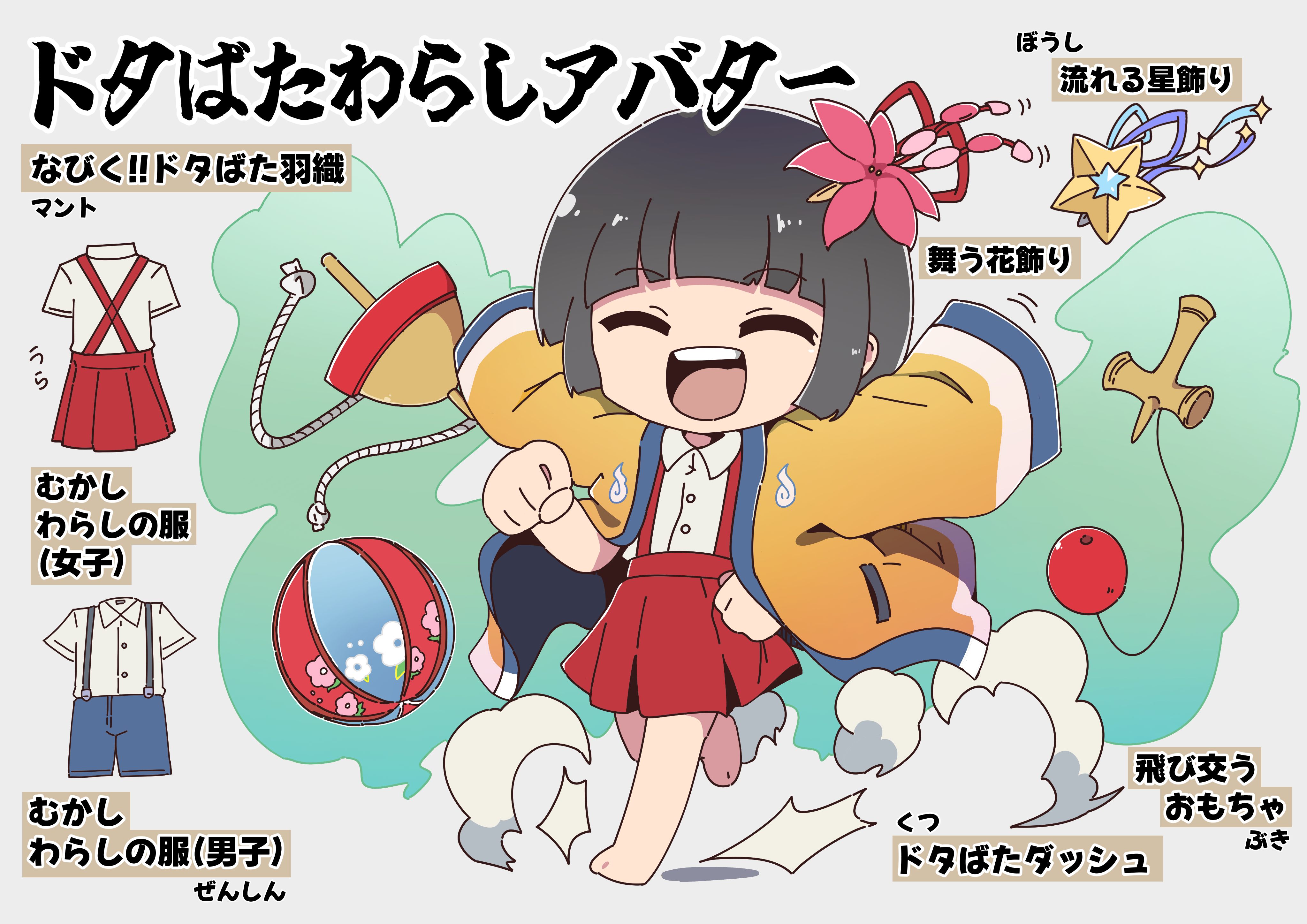 ファンアート ファンアート 新着 ランキング 殿堂入り キャラクター名: iceカービィ ワールド: かえで 冒険手帳を見る 他の作品を見る ドタばたわらしアバター 日付:2025.09.30 22:47 表示回数:332 ドタばたわらしアバター 帽子 流れる星飾り/ 舞う花飾り とにかくなびく!!ジャラジャラと!!星のように!!花のように!! 全身 むかしわらしの服(男子)/ むかしわらしの服(女子) 今ではコスプレともいわれるヤツです マント なびく!!ドタばた羽織 なびく!!まるで両手をひろげて走ってるかのように!! くつ ドタばたダッシュ めちゃくちゃホコリが舞う!!裸足で駆け巡れ!! 武器 飛び交うおもちゃ ポルターなんとかでおもちゃが飛び交う!! スタンプを押す スタンプ(26) Hyako Aruiet 麻婆ペレット フィーディア 化ヶ猫姫 とよしさん エミヤモモカ 剣豪xTack mk風矢セレン まじマス Xx亞瀬瑠xX 黒猫にゃう 糸志 Remonan ルチェリカ うちゃこ x公務員x 箱ペコ ooカシューoo フォルネナ 飛沫デス ヒリアード 琉球美螺 よどまる ー九十九沢ー らむり コメント コメント(0) ファンアートの一覧に戻る TOPへ