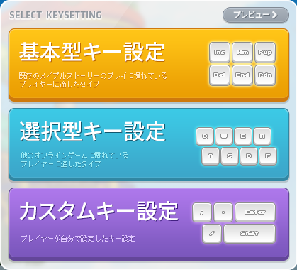 キャラクターを作成する際にキー設定タイプを選択できます。