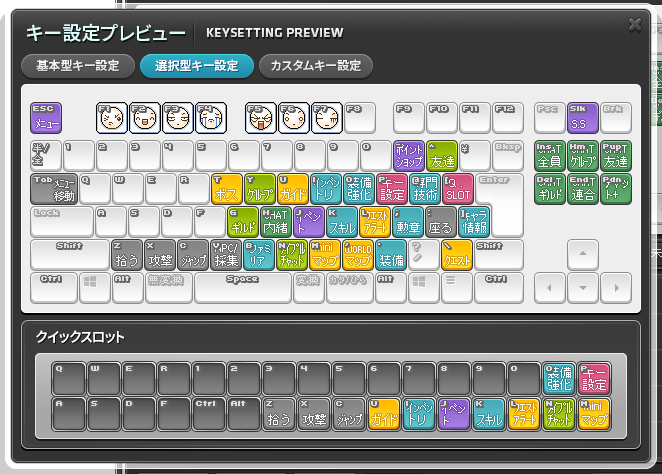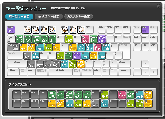 ■基本ショートカットキーの配置とクイックスロットを設定し、