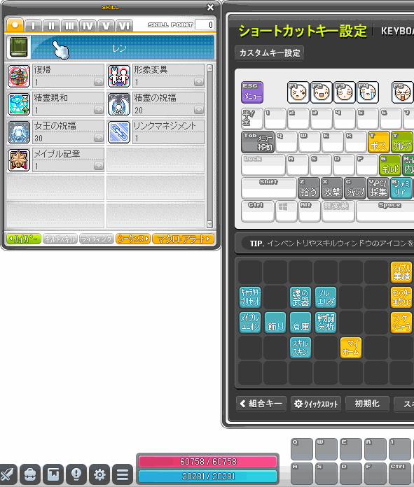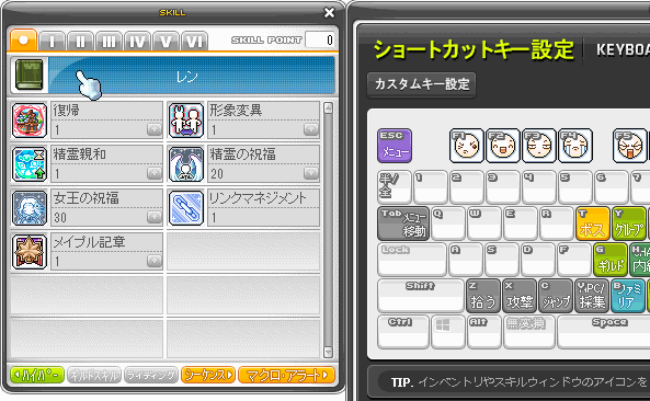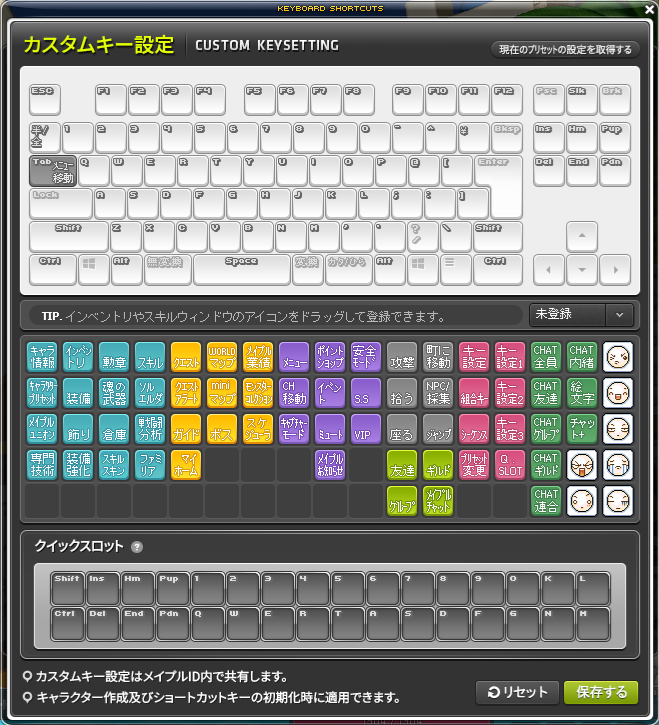 ■設定したショートカットキー配置及びクイックスロット設定はメイプルID内で共有されます。