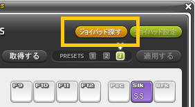 「ジョイパッド探す」ボタンを押すと接続されているゲームパッドを認識し、使用することができます。