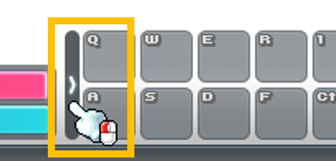■クイックスロットの左端をクリック、または「9」キー(デフォルト)でクイックスロットを開いたり閉じることができます。