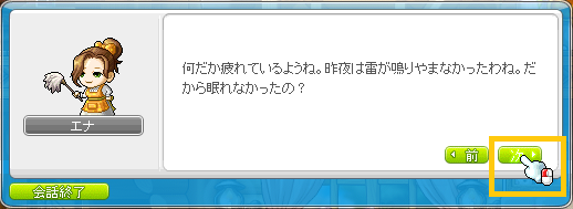 ■マウスで「次へ」ボタンをクリックするか、「V」キーを押して会話を進めることができます。