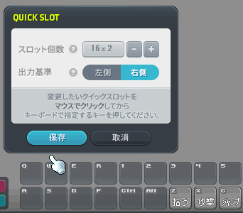 ■変更したいボタンをマウスでクリックし、割り当てたいキーボードのキーを押すことでクイックスロットが変更されます。