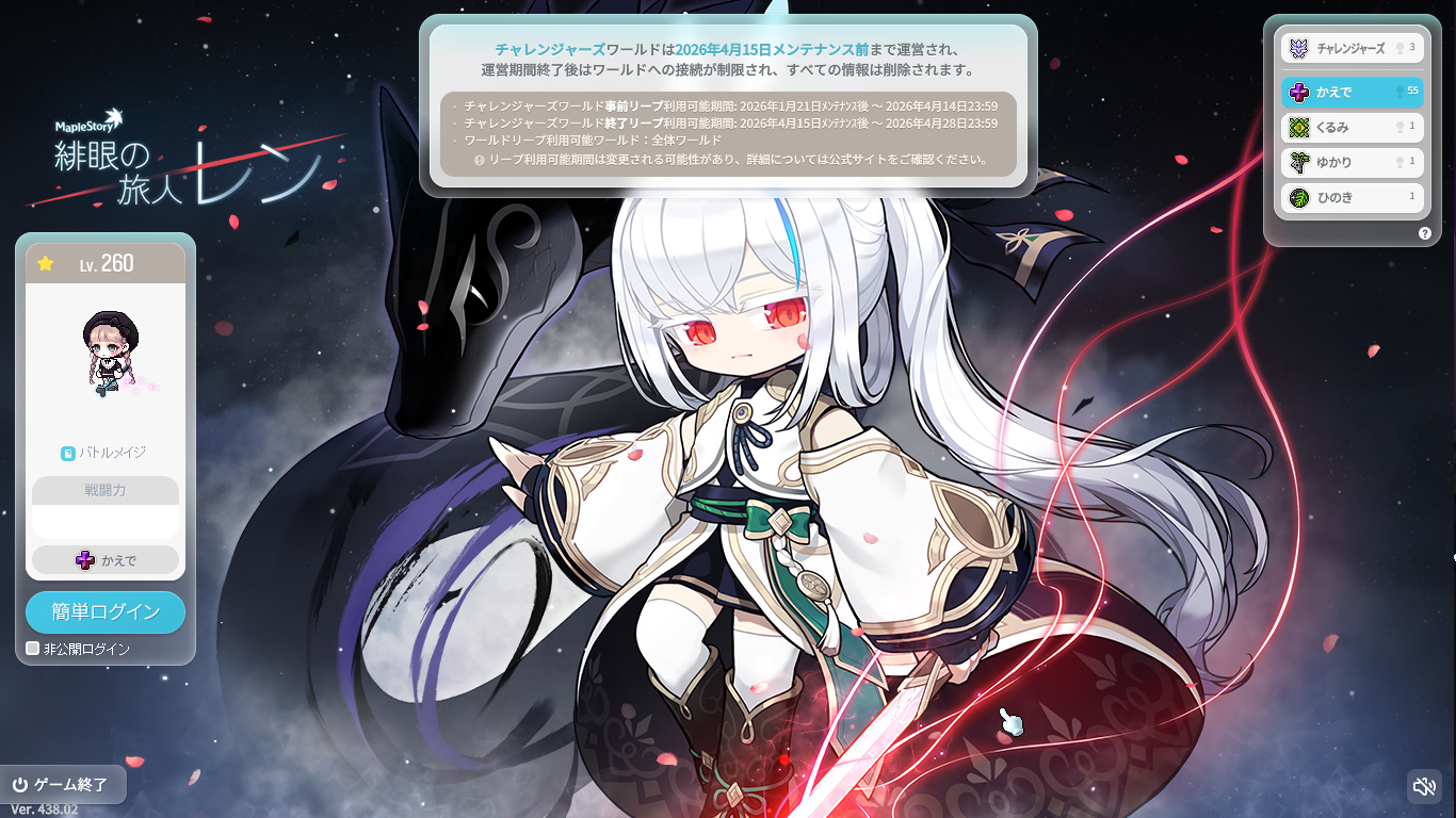 メイプルIDを2つ以上作成している場合は、代表IDを変更できます。