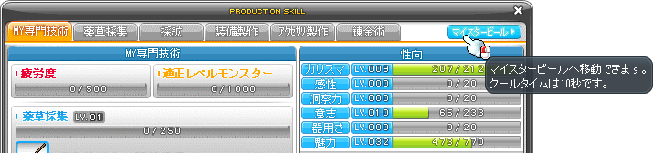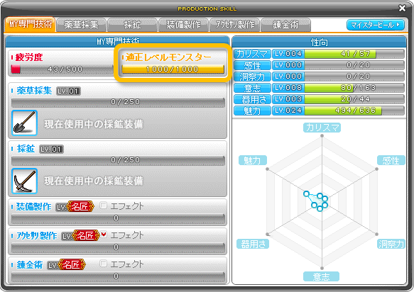 10レベル到達後は、熟練度をさらに積むことで職人と名匠レベルに到達できます。