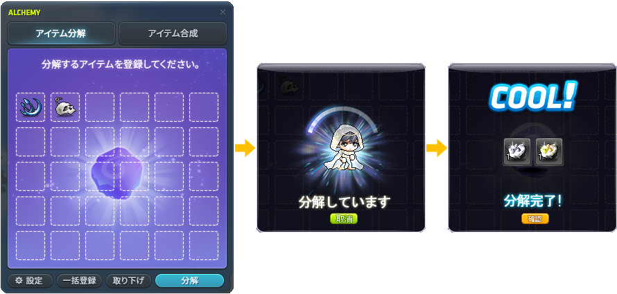 | アイテムの種類 | 分解結果 |