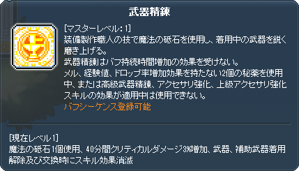 | 装備製作 | 武器精錬スキル |