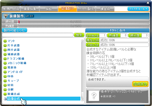 職人や名匠レベルに到達すると、すべてのアイテム制作成功率が100%になり、アイテム制作や合成時に、
