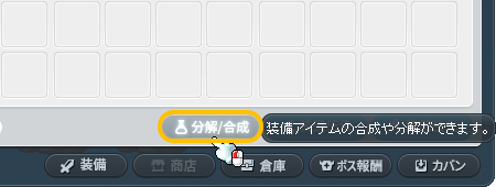 合成はアイテムインベントリの「分解/合成」ボタン、