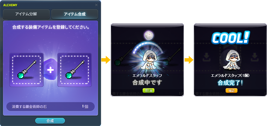 合成する装備アイテムに一つでも潜在能力がない場合、合成されたアイテムに潜在能力が付かない可能性があります。