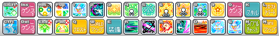 | オン/オフスキル | スキルがON状態ではスキル効果が発動するが、OFF状態ではスキル効果が発動しないアクティブスキル。 バフスキルと違って持続時間がなく、クールタイムもないスキル。 直接スキルキーを入力するか、スキルウィンドウで該当スキルをダブルクリックすることでON/OFF状態を切り替えることができる。 スキルがON状態の場合、画面右上にそのスキルのアイコンが表示される。 |