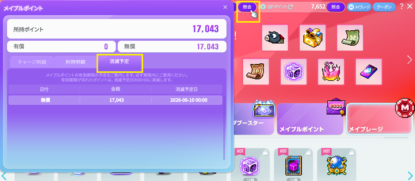 毎月10日の0:00に使用期限を過ぎたメイプルポイントが削除されます。