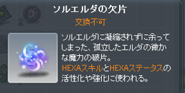 6次転職後の必須アイテム「ソルエルダ」と「ソルエルダの欠片」を消費することで、HEXAコア/ステータスの活性化や強化をすることができます。