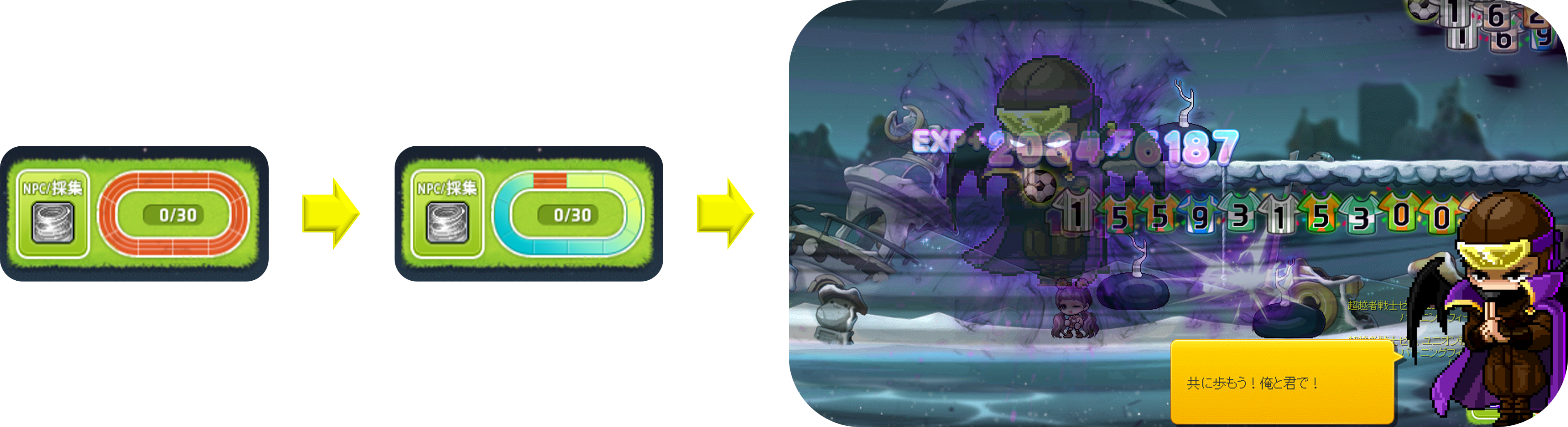 適正レベルモンスターを200匹退治するとイベントスキル「ゲットオーバーリミット:ローリングシャドウ」が発動し、追加経験値の獲得とフィールド上のモンスターを攻撃します。