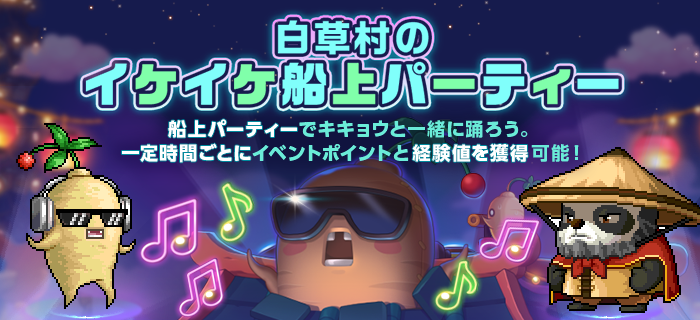 - ※イベントマップ「白草村の遊覧船」にて、イベントスキル「踊るキキョウスキル」使用中のみ経験値を獲得できます。